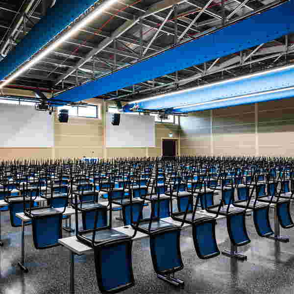 In nur sechs Monaten entstand ein Gebäudekomplex, der heute sämtliche zentralen Funktionen des Campus beherbergt. Die Baumeister von LDB errichteten unter anderem zwei Hallen mit 25 × 40 und 25 × 75 Metern Grundfläche, jeweils mit sieben Metern Seitenhöhe. Darin: insgesamt fünf großzügige Hörsäle. Direkt gegenüber: eine weitere Einheit (15 × 70 und 15 × 30 Meter) aufgeteilt in zwei Seminarräume, Technikraum 1 + 2 sowie den Sanitärbereich Süd.