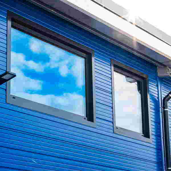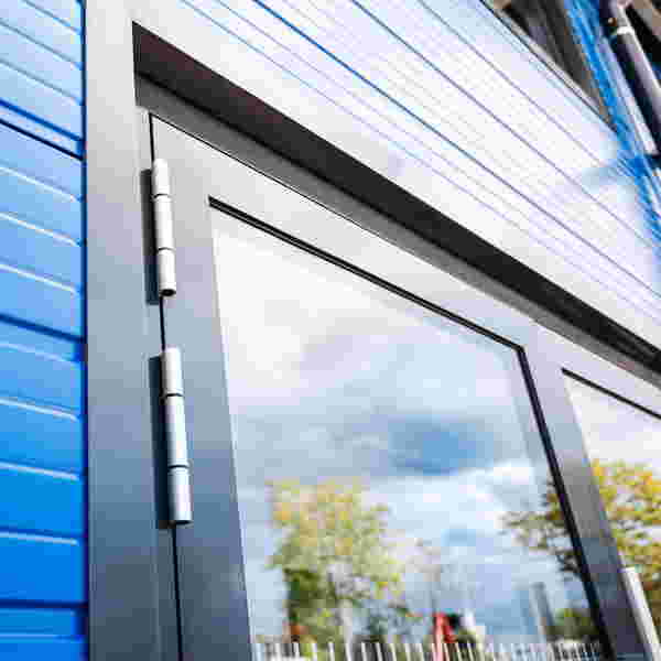Was auf den ersten Blick wie klassischer Hochschulbau wirkt, basiert auf modularen Systemen, die mit gängigen Standards brechen: Sämtliche Dächer wurden mit A0-zertifizierten Sandwichelementen ausgestattet – nicht brennbar und GEG-konform. Großzügige Dachflächenfenster bringen Tageslicht tief in die Innenräume und schaffen eine helle, angenehme Lernumgebung. Blaue Fassaden in stylischer Pfosten-Riegel-Optik verleihen dem Bauwerk eine klare, zeitgemäße Anmutung. Auch funktional zeigt sich der Anspruch im Detail: Türen mit Drehantrieb öffnen automatisch per Infrarotsensor – kontaktlos, barrierefrei und auf Komfort ausgelegt.